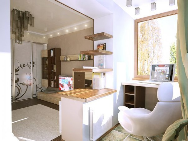 А ремонт все продолжается...Настало время планировать гостиную. Она у меня 4*3.Лоджия - 3*1. Хотелось бы выбить перегородку и сделать на лоджии рабочую зону.Думаю сделать в стиле винтаж. Все такое неееежное, светлое) В одном углу поставить стол и т.д (как на картинке с голубым светильником). А параллельно сделать на весь размер (аж на весь метр)))) ) - шкаф-купе. Вот приблизительные идеи по этому поводу.