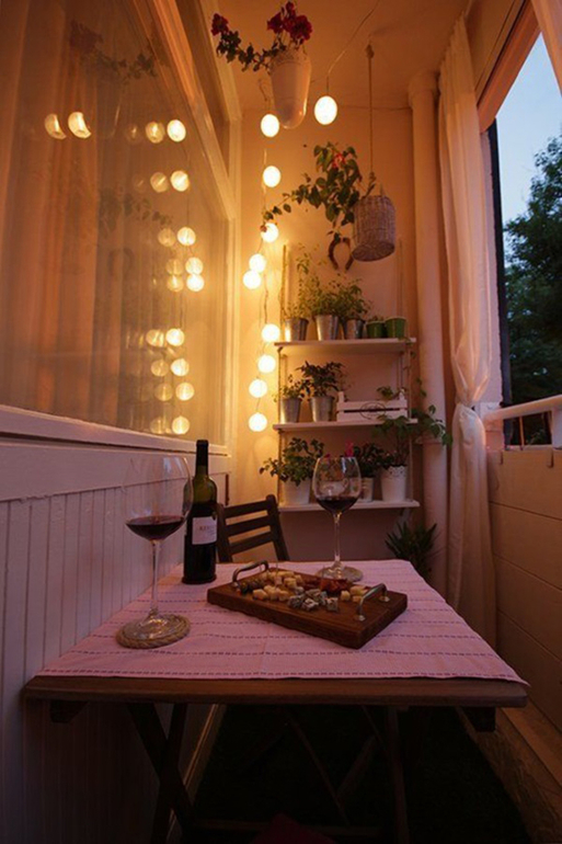 мы сделали как на фото номер 2. Откидной столик из икеи и стулья икеевские складывающиеся. Очень удобно. практически так же украсили все и летом вечерами там сидели. Но когда солнцепек приходилось ждать когда остынет)) В несезое стульчики удобно стоят у стены,а столик сложен и незаметен.))