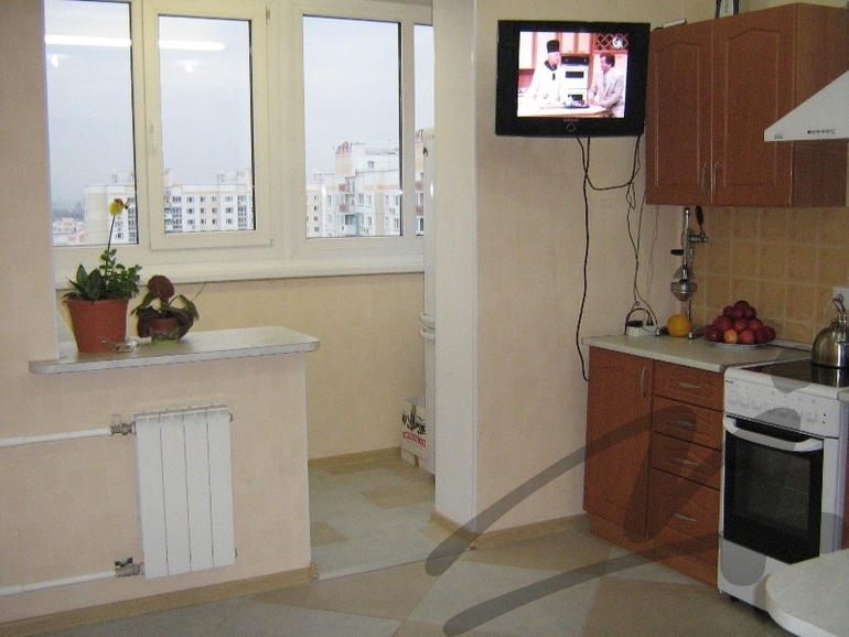 Декор окон. Текстиль. Жалюзи.Имеется кухня, объединённая с лоджией: