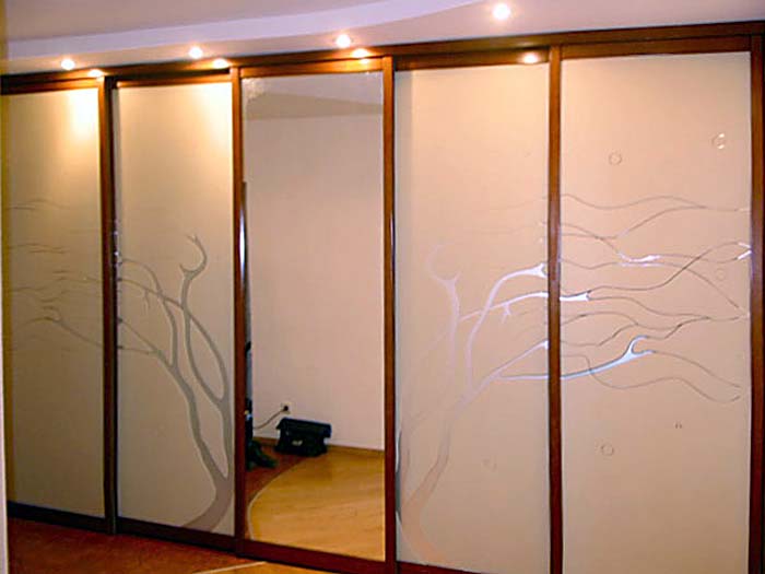Я бы сделала просто зеркальный купэ, он зрительно увеличит пространство и будет отражать фотопечать и свет.