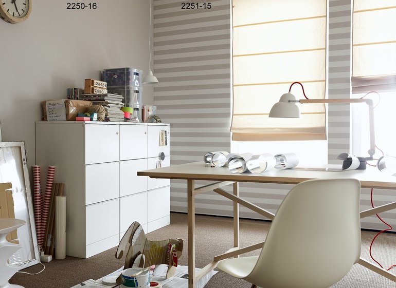Хочу 2 стены в полоски, 2 стены в горох. Проблема в том, что мне бы хотелось горох на стену там, где окно и напротив кухонного гарнитура, но в силу того,что стены (или пол, или потолок, не знаю, что именно) неровные по высоте (подозреваю), очень сложно будет клеить полоски на стену там, где гарнитур, так, чтобы линии полос были параллельны столешнице.