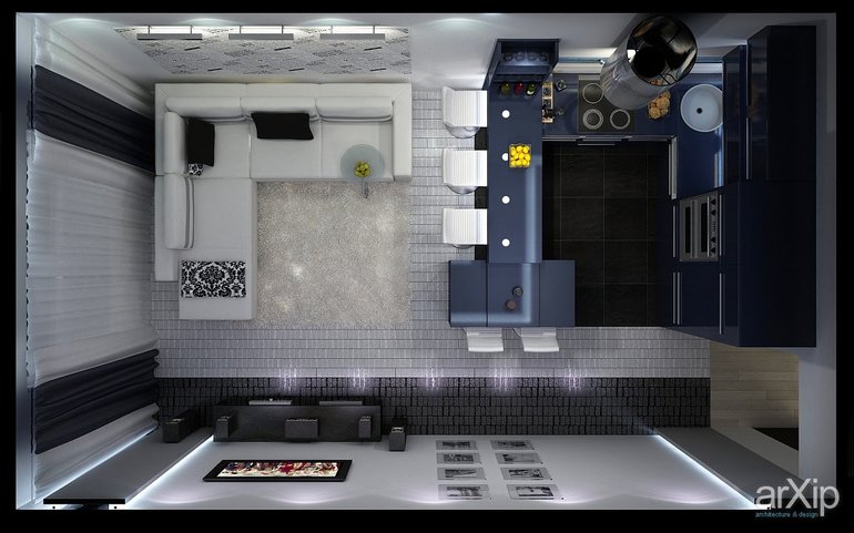 вот вариант комнаты похожей на нашу,только диван хотим на противоположной стороне, и не знаем что лучше,барная стойка или стол??