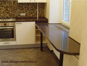 Интерьерное решение кухниБлин, девчонки, расстроилась жуть. Делаем кухню, я уже все решила, эскиз набросала (спасибо девочки, кто помог определиться с расстановкой))) ). Хотела делать подоконник-столешницу, так как площадь маленькая (9.5кв) да и Г-образная комната, решила таким образом место сэкономить, да и нравится мне такой вид. На глаз прикинула - высота окна как раз. Дошло до дела, стала я все с точностью примерять - не хватает 10см ( у нас 80см, а надо 90). сказать что я расстроилась -ничего не сказать. Окно поставили два года назад, покупали дорогое, жалко выбрасывать и покупать новое из-за 10см. Ума не приложу что делать. Думаю может сделать как на второй картинке. Вот только у нас под окном батарея (она маленькая, аккуратная), и что бы тепло не закрывать тумбой, думаю сделать эту столешницу на ножках. Что скажете?