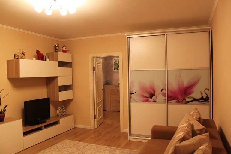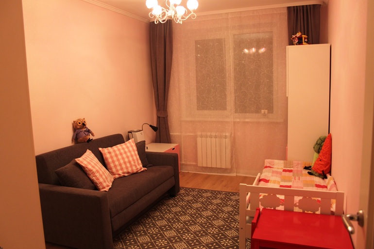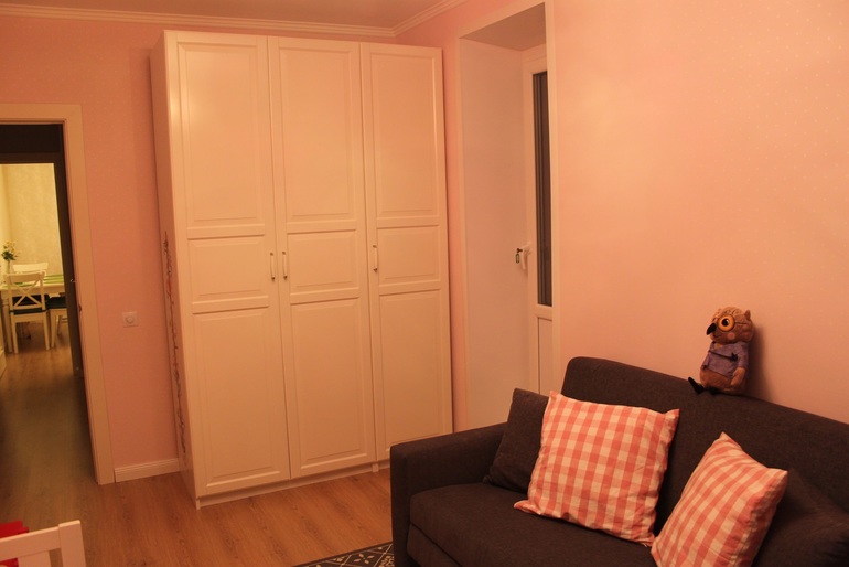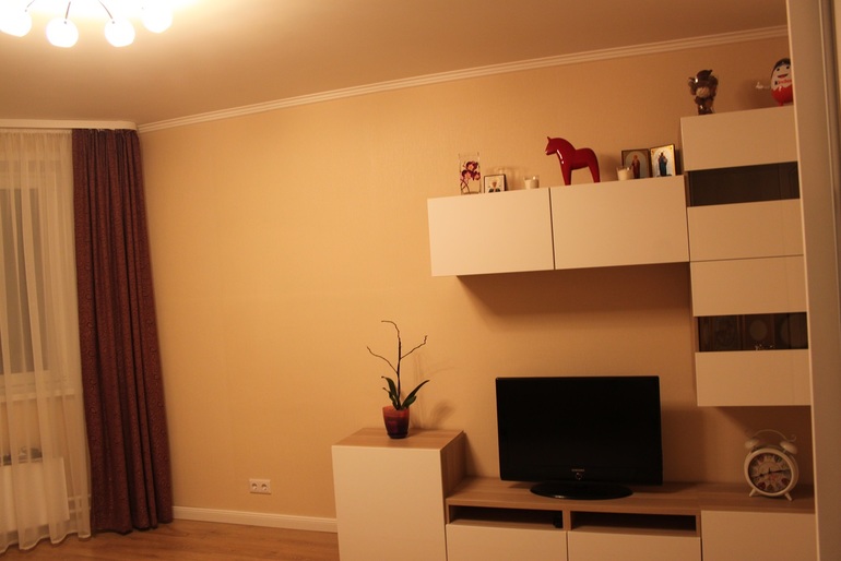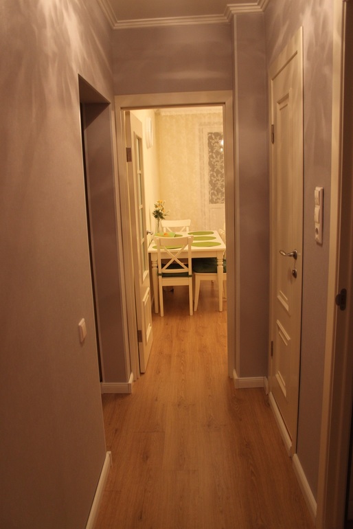 Наше новосельеПереехали еще в августе в 2-х комн. квартиру площадью 70кв., распашонка. Квартиру купили давно, но сдавали.Ремонта не было вернее был, но обои наклеены на серые стены (у нас новостройка), разбитая стяжка под ногами. Данная квартира это следующий этап в нашей жизни после 1-комн. мебель оставили всю там только забрали холодильник, стиральную машинку и детскую кроватку. Так как наша цель 3-х или 4-х комнатная квартира площадью 100кв., то ремонт не дорогой.Это наш перевалочный пункт. Начали делать в апреле и вот в августе закончили. Делали мы очень много сами. Мне до сих пор шпатель снится. Нанимали только стяжку, потолок, ванну/туалет плитку. Остальное сами после работы и до пол первого ночи на квартире. Очень часто перед работой ездили в Леруа, вставали в 5.30 и к 7 были у леруа. Ладно хоть бабушка забрала дочку на время ремонта.