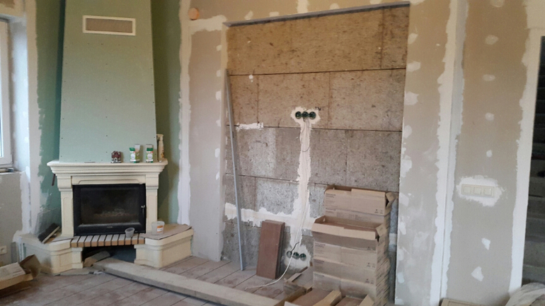 Сделали таки нишу под ТВ. Потом внутри будет кирпич. Вот так получилось:
