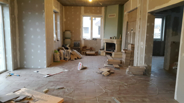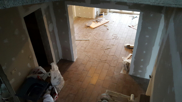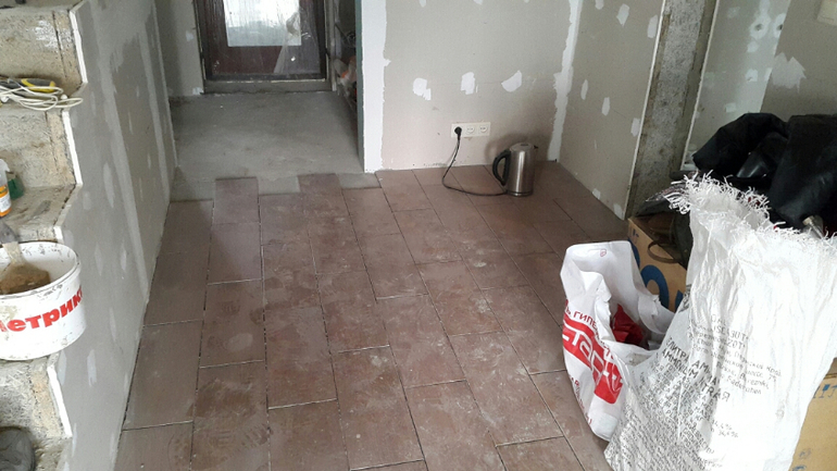 Пока все сильно временное, кроме пола :) Когда до косметики дойдем не известно, денег на все сильно не хватает.