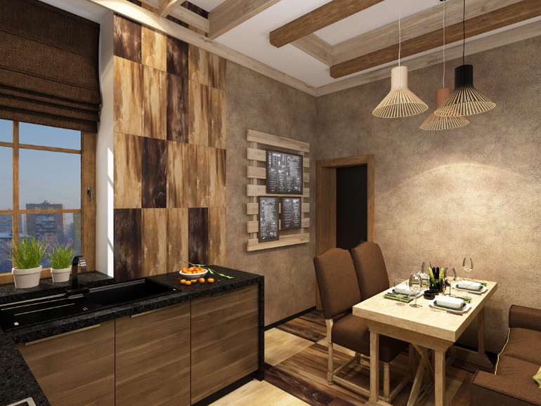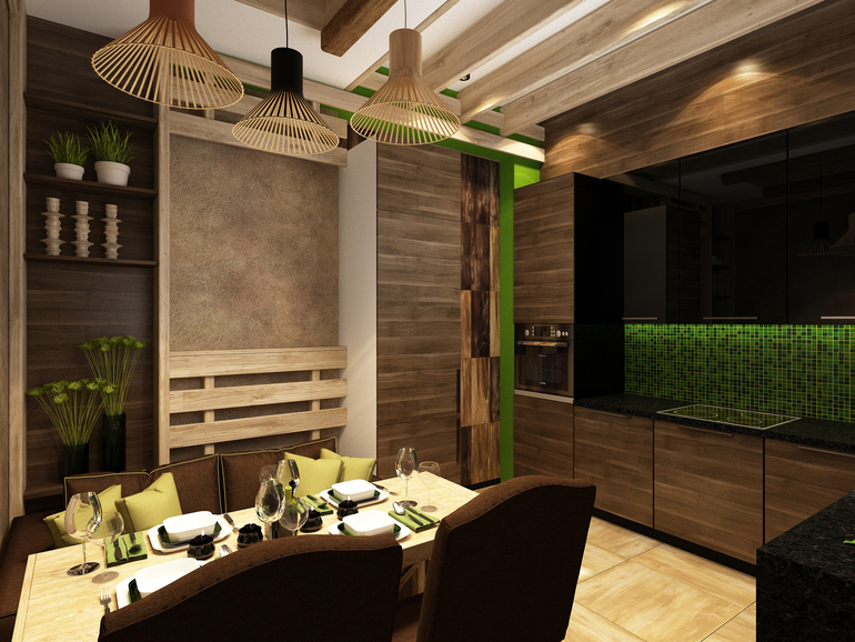 Интерьерное решение кухниКухня выполнена мною в современном стиле с элементами "эко".