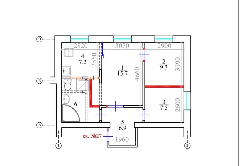 Квартира угловая двушка, 54 м (плюс предбанник, бережно отгороженый старыми хозяевами около 2 кв м). Из нее мы сделали трешку с двумя микроскопическими спальнями и немаленьким санузлом, плюс соединили кухню с гостиной (на проекте указаны раздвижные двери, тк у нас газ). К слову, проект уже согласовали в жилинспекции и осталось только после оконания ремонта все это завершить (новый план бти).