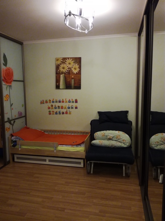 На фото не видно, у нас по стене которая за дверью шкаф-купе во всю стену, там за одной дверью было спрятано рабочее место, Муж сейчас переделывает будет полностью шкаф под хранение вещей и белый шкаф убирается из комнаты. Мы планировали перенести полностью детскую в ту часть где окно, и почему-то идея с кроватями углом мне не приходила в голову, хотя так придется кому то спать прям под окном. А диван возвращается на свое место Где сейчас стоит шкаф Белый и Дашина кровать... Вроде так!?