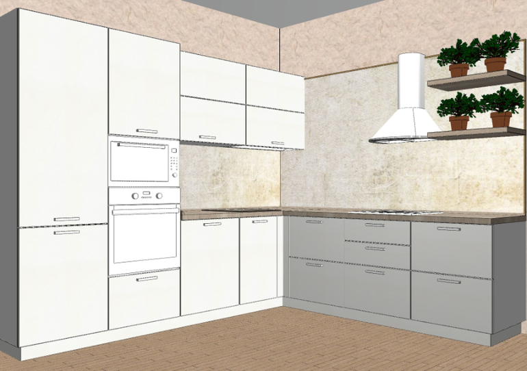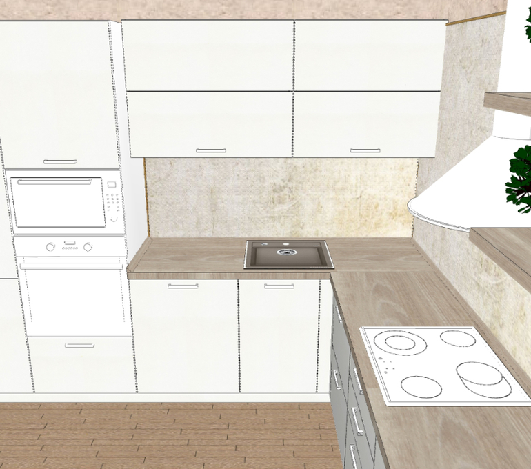 Это кухня, которую мне нарисовали в фирме.(все шкафы по 60 см, кроме навесных, они 90 см). Техника вся белая будет.