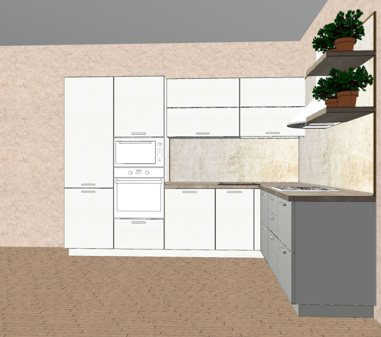 - Вот мне кажется, что пенал с холодильником и пенал с духовкой/микроволновкой надо поменять местами.
