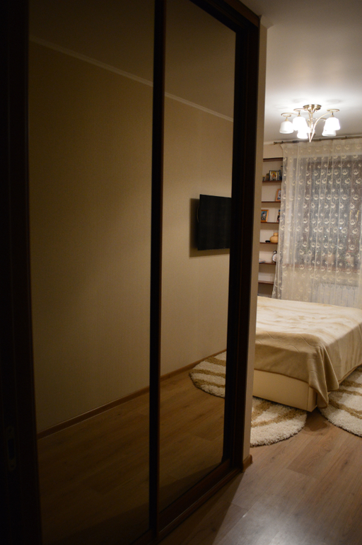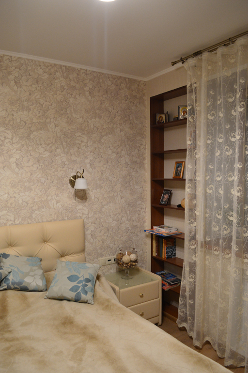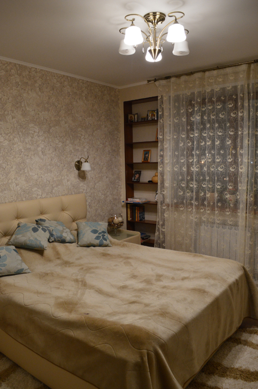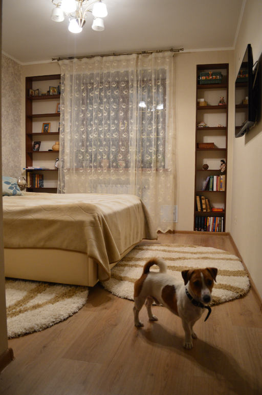 Если честно, вот вроде и пол очень красивый и кровать и цвет стен очень тёплый, но лично выглядит не совсем современно и не до конца уютно.. Все очень однотонно. Вам бы эти шторы советские поменять на какие- нибудь яркие, хотя бы по цвету сделать как подушки, что лежат на кровати. И сделать шторки не в пол, а только чуть выше батареи. А эти шторы совсем не подходят, как из чужой спальни взяты и как-то странно смотрятся между двух стеновых впадин.