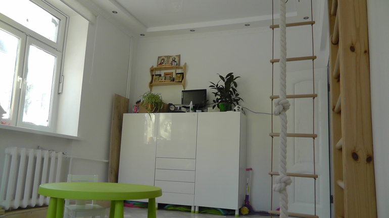 И мне эта комната очень нравиться, в ней светло, легко и весело ))) Спортивная лесенка раскладывается и получается канатная лесенка и рукоход.