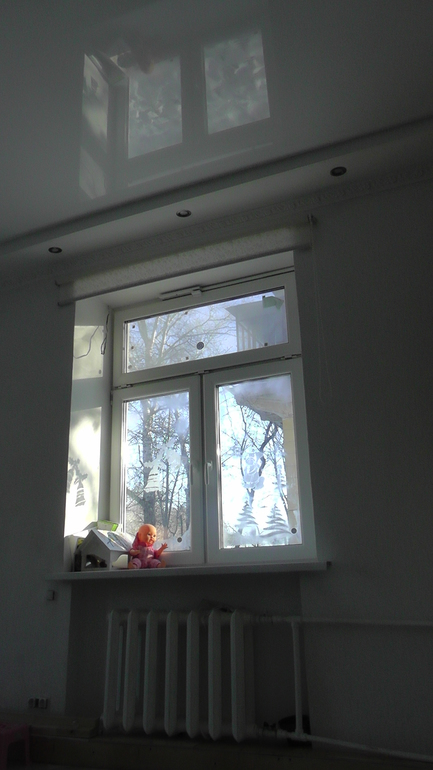 Вот единственное, что пока не придумала, это шторы. Окошко со снеговиком видно из прихожей, и хочу на это окно длинные шторы в пол.