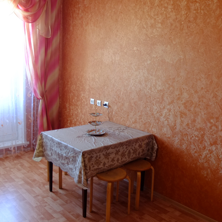 Однозначно поменять шторы на льняные в стиле икеа и скатерть льняную, сразу будет лучше выглядеть. А так "дорого-богато" хотелось, а получилось не очень. Блестящие обои, шторы розовые, наоборот портят. Вам надо "упростить" все это