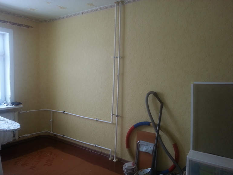 Решили с трубами что-нибудь? У нас такое безобразие было в гостиной, тоже почти посередине трубы. Мы решили этот вопрос нишами, сделали по центру большую нишу и по бокам маленькие, а трубы муж обрезал и заворачивал трубами из пропилена как раз в короб, который идет между нишами. В четверг или пятницу буду на квартире, могу сфотографировать, если вы еще ничего не решили.