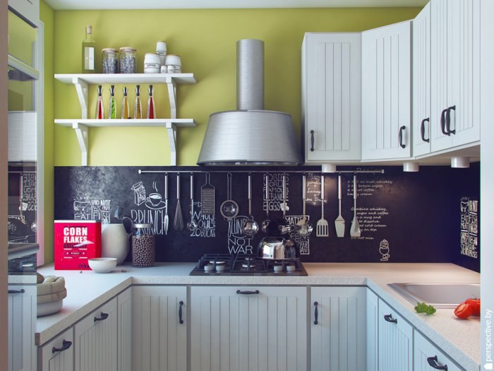 Подумываю сделать на кухне грифельный фартук, вся концепция кухни планирует в скандинавском стиле, над фартуком будут открытые белые полки.