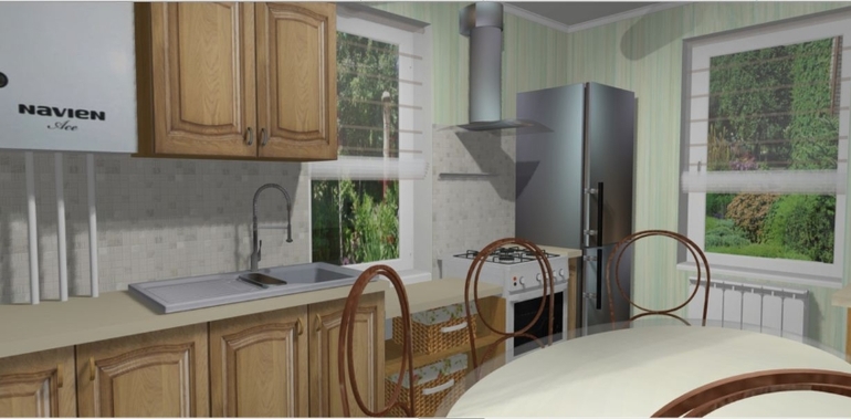Наталья, а можно фото как у вас котел закрыт? Плита на фото на том же месте, где у старой хозяйки была, та за шкафом по верху труба к котлу идет. Насчет стола меня тоже смущает, у нас относительно большая семья( 6 человек) и хочется большой стол.