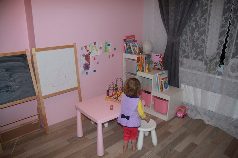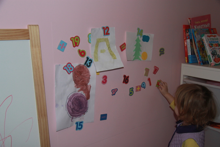 "Фича" нашей детской-кусок магнитной стены, которая заменяет магниты на холодильнике,которые мы с мужем очень не любим) плюс это детская стена славы и художественных достижений)) Это специальная магнитная краска (мы красили Тиккурилой)