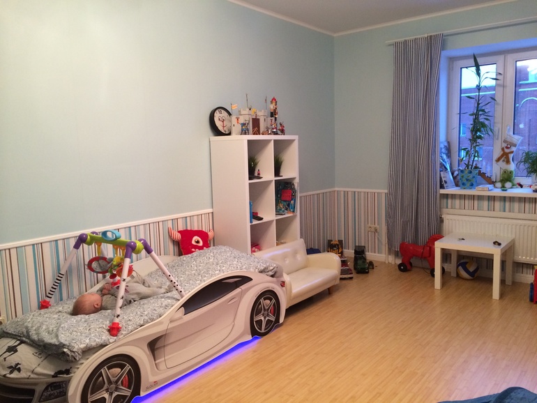 Что имеем: карапуз 3 лет, который спит между мамой и папой, но понимает, что скоро лафа кончится, так как появится братик) Соответственно детская планируется в будущем на 2-х детей. Я прекрасно понимаю, что отселить его будет сложно (хотя... а вдруг, как с ГВ - быстро и безболезненно?). Что маленькая кровать нам не подходит, так как скорее всего придется рядом лежать по вечерам, а то и ночью приходить под бочок зовущего чада. Да, еще она должна быть очень прочной и выдерживать нагрузку до 130 кг, потому что муж у меня мужчина в полном расцвете сил и лет))) И нужно понимать, что в будущем должно быть 2 кровати....