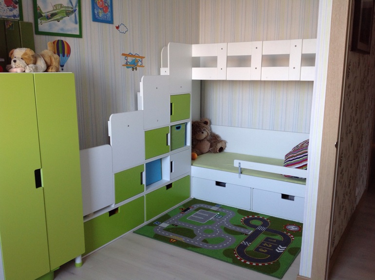2) Кровать-чердак. В планах подсунуть под нее одноярусную. Типа вот такого