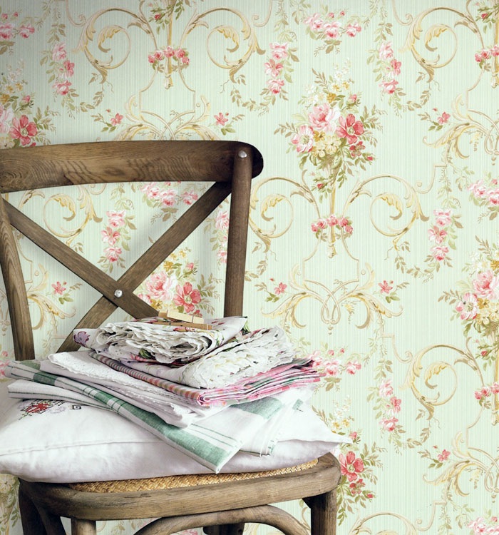 обои на одну стену, которая напротив портала с плитой, - Wallquest Chantilly мятные