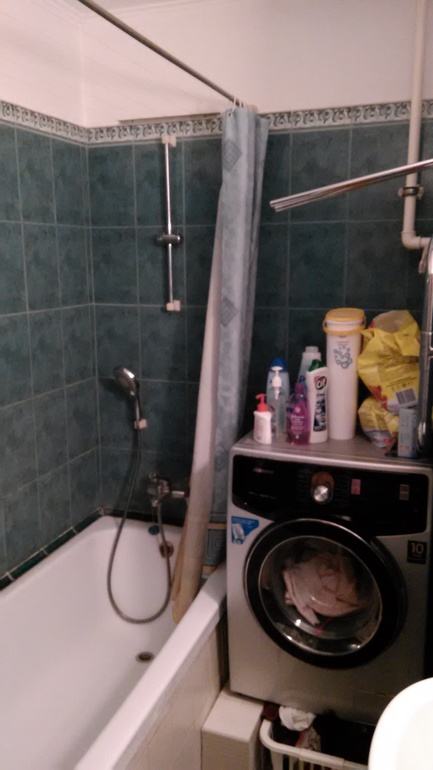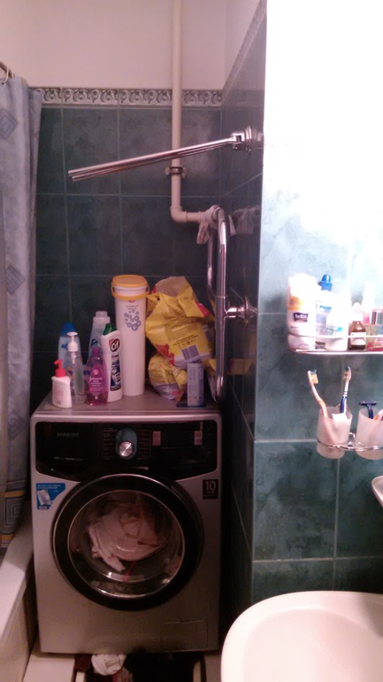 Машинку поставить больше некуда, т.к.кухня 6 м и тоже с выступами, т.е. места нет впринципе. В ванной хотелось бы ещё шкафчик разместить по возможности. Помимо малой площади ванной ещё есть трубы внизу в порожке- идут вдоль стены. Как обыграть этот выступ. Машинка стоит не на полу т.к она просто не помещается из-за этого выступа в стене . Тумбу под раковину поставить тоже сложно из-за выступа и короткой стены возле двери (30 см).