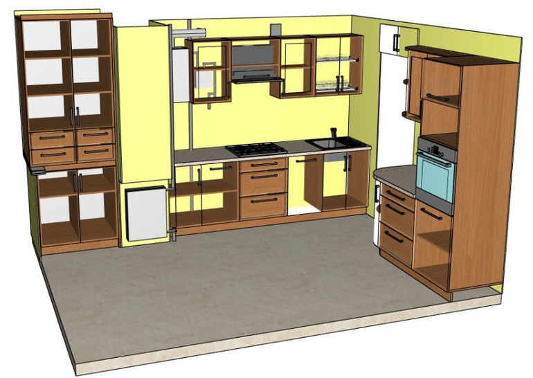 Пока отказались от стекленных шкафчиков возле плиты, может оставим один выдвижной ящик возле духовки.