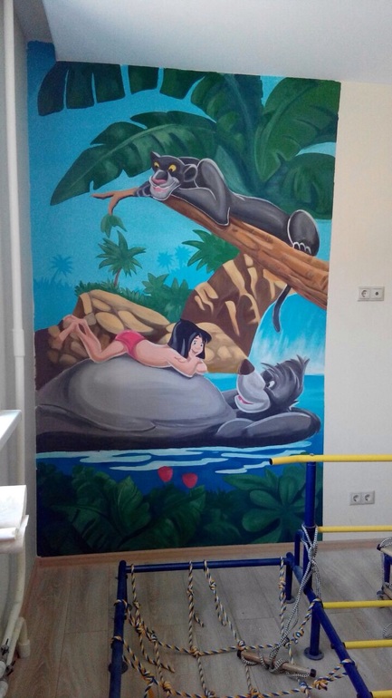 Здравствуйте, нам расписывала стену в детской молодая художница, получилось очень хорошо и не дорого. Если хотите дам ссылку на ее страницу в контакте, там есть наша комната или могу сфотографировать.