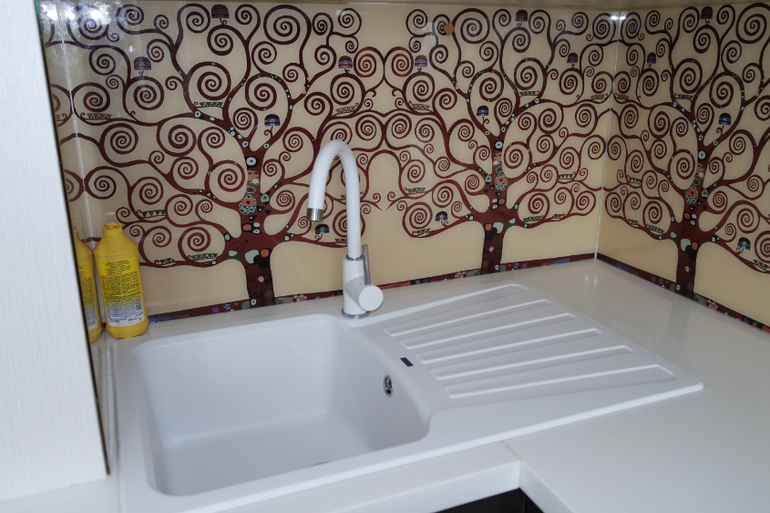 Спасибо) столешница из искусственного камня, расстояние 55см. Обычно делают 60см, но мы все маленького роста) я слышала что низко вешать нельзя вытяжку которая отдельная, а встраиваемую можно