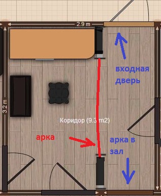 Вокруг входной двери, на стене по левую руку от входа и верхняя часть арки будет в белом гипсовом кирпичике. А вот какие обои клеить на остальных стенах (какого цвета) ума не приложу! Двери будут темные, цвет орех. На полу у входной двери плитка песочного цвета с черными маленькими квадратиками, а дальше ламинат.