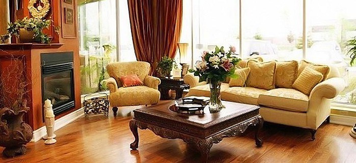 Дело в том, что есть несколько элементов, которые менять не будем: шикарный янтарно-коричневый пол из сосновой доски, чуть более светлая деревянная лестница с деревянной же системой хранения под ней, чуть темнее насыщенные коричневые окна. Короче понятно, какой вкус был у моего мужа, когда он делал это, ( и мужем то тогда и не был)). К этому он добавил бежевую плитку, бежевый камин, золотистые шторы, бежевую кухню и тд и тп. Получилось такое теплое, местами уютное пятно да еще и залитое солнцем. Нет стиля, нет интерьера как такового. Поэтому решено менять мебель, текстиль, аксессуары, обои.
