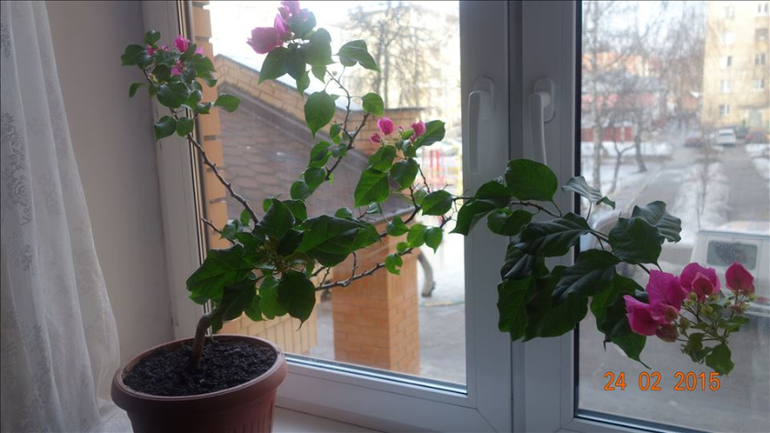 Ого! Впервые вижу цветущую бугенвилию в нашем климате. А что, она даже на западном окне цветёт?