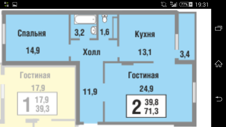 Мне нравится, что в кухню 2 входа, но отдельную спальню хочется сильнее)) а где, в вашем варианте, сделать спальню?