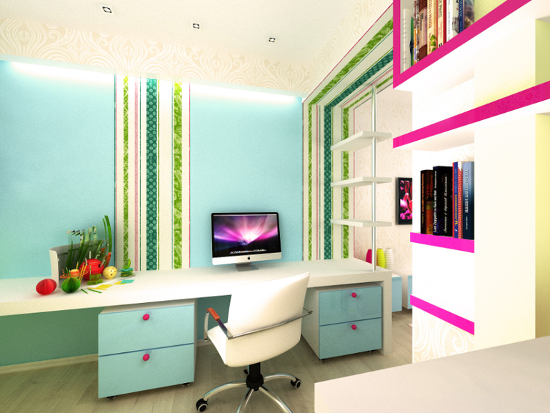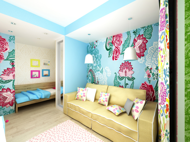 Хочется отдельное внимание уделить детской. Комната расчитана на девочку пяти лет и малыша в перспективе)