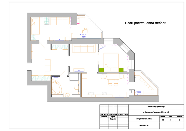 Также, на планах видно, что одну достаточно вытянутую комнату мы разделили перегородкой на две части. В результате этого получили полноценную спальню.