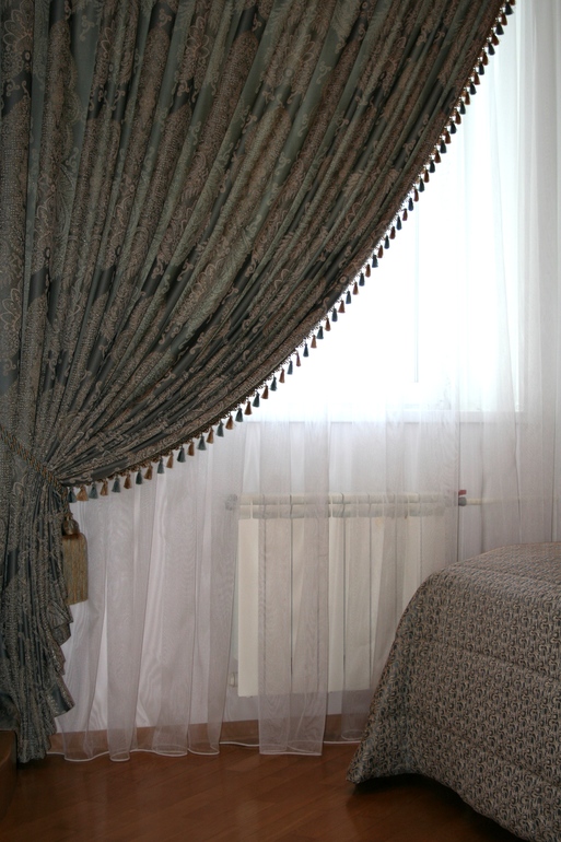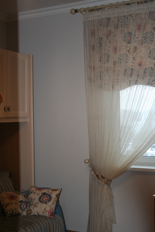 хорошие шторки !кисточки)единственное -подушек на кровати должно быть больше (раза в три)
