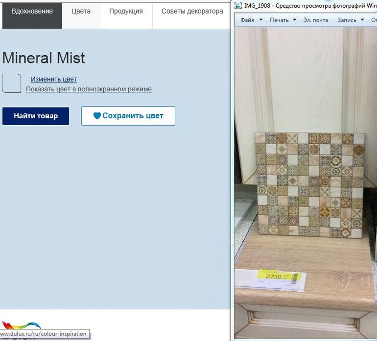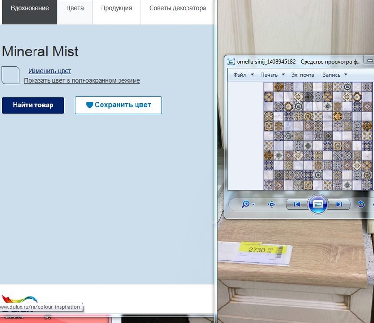 Потом увидела такую же плитку в голубой гамме, сначала была категорически против, а потом присмотрелась, может это как раз и есть то цветовое пятно на бежевой кухне?