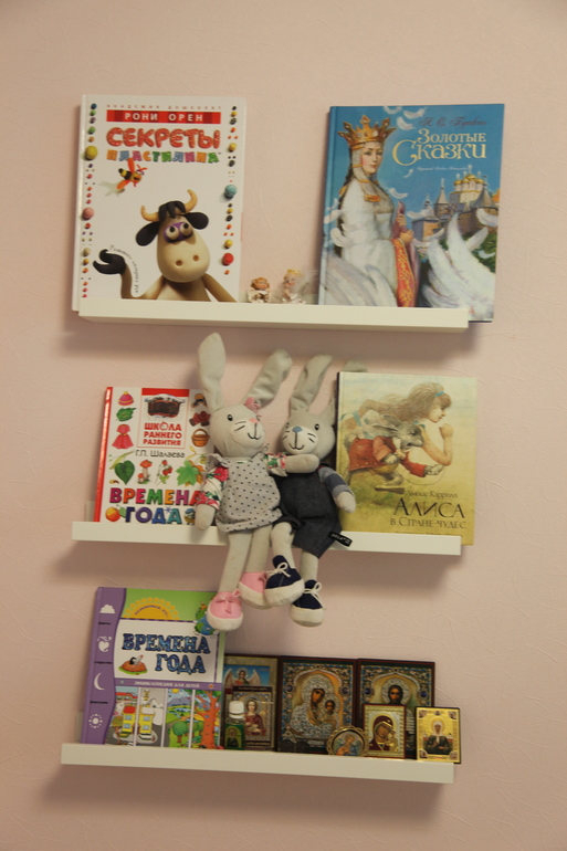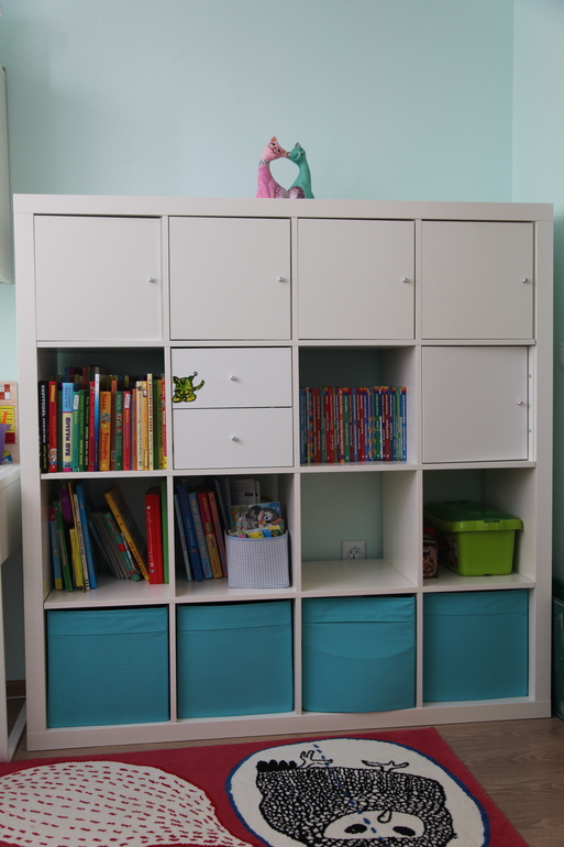Это стеллаж экспедит, у нас богатая детская библиотека, но сюда все книги почти поместились, в нижних ящиках игрушки( часть в кладовке и еще на балконе), ящики дрена уже помяты, встает на них младшенький). Может что-то над стеллажом придумать? Пространство пустует)