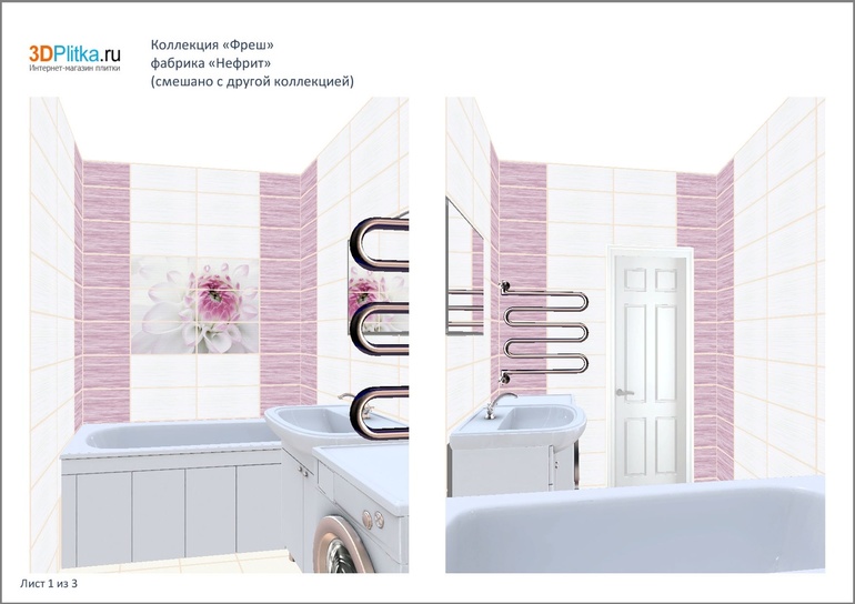 Девочки, милые, помогите...Кому какой проект больше нравиться?Прошу не обращать особое внимание на отцентровку плитки.С эим разберусь позже. Напольная плитка будет лиловая из этой же коллекции.