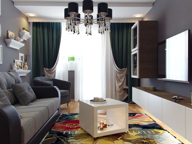 Интерьерное решение гостинойХочется уже показать свою кухню, но все никак до конца не доделаем. Покажу пока проект гостиной для моих родителей.