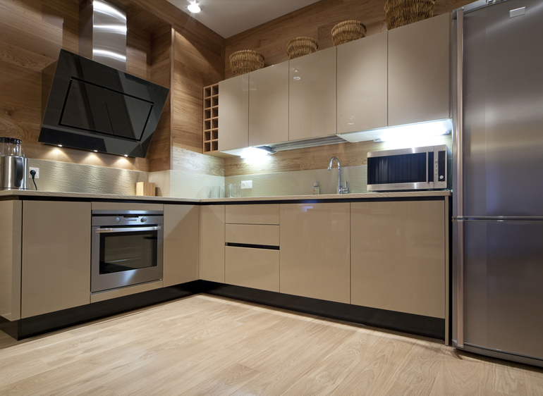 Интерьерное решение кухниКухня у меня эмаль глянец бежевого цвета. Буквой П.