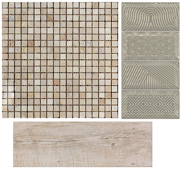Долго выбирала, чтобы между собой сочетались все три материала. Так как настенная плитка декорирована узором, то попыталась найти максимально лаконичную мозаику. В итоге остановилась на Bertini Mosaic Chinese Travertine. Но до конца никак не могу определиться. Нет ощущения, что вот он, идеальный вариант.
