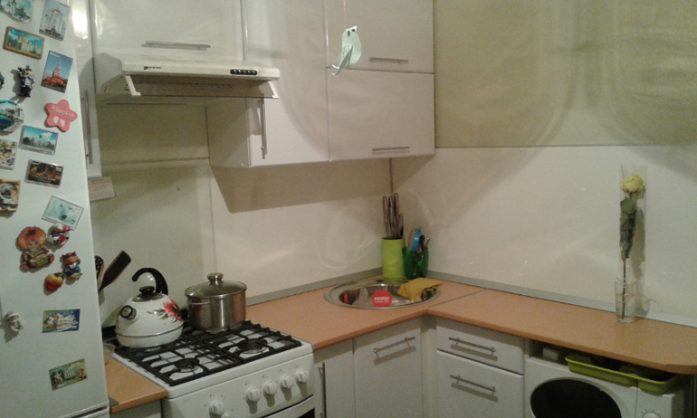 Когда мы с мужем жили в пятиэтажке у нас была абсолютно такая же кухня!!!! И расстановка мебели прям точь-в-точь)))) только микроволновка у нас стояла на подоконнике, они были у нас очень широкими и она помещалась там поперек. Эх, как в свою квартирку попала))) ностальгия)