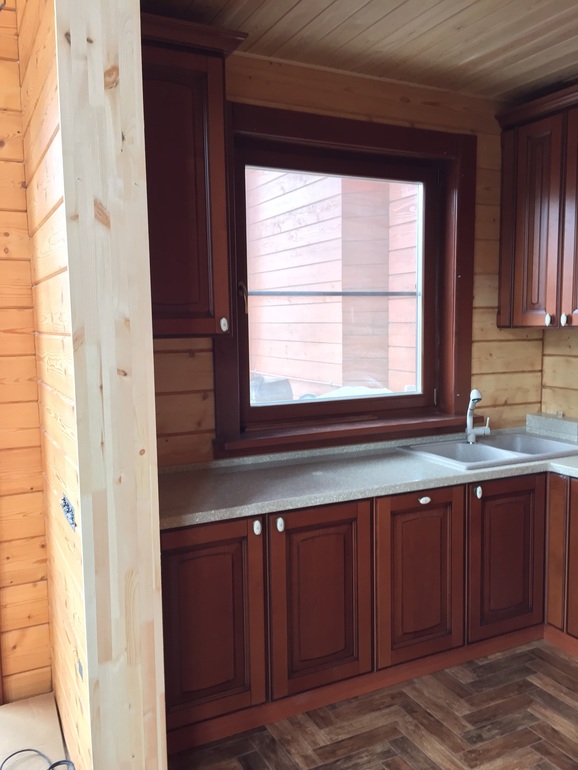 Да, мы тоже из клееного бруса поставили дом. И тоже нам говорили, что не садится. Но оказалось — "почти не садится". И вообще — дерево живое, поэтому дом в любом случае будет немного гулять. Из-за этого надо крепить "плавающие" направляющие, которые не будут мешать дому, а на них у же лист ГК ил чего-то там + плитка. Пирог получается под 7 см! Я вообще в шоке от этого. Решили на кухне яхтным лаком стену покрывать. Не знаю, как еще сделать. И тут Ваша кухня))) Так что у меня "крик души" получился)))