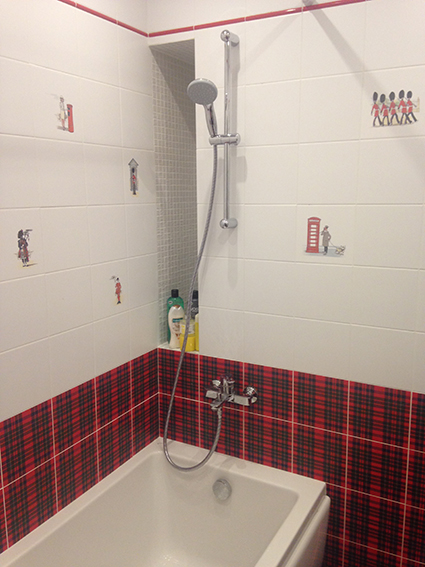 Плитку в ванную выбрал муж, сопротивляться я не стала, только сделала раскладку)