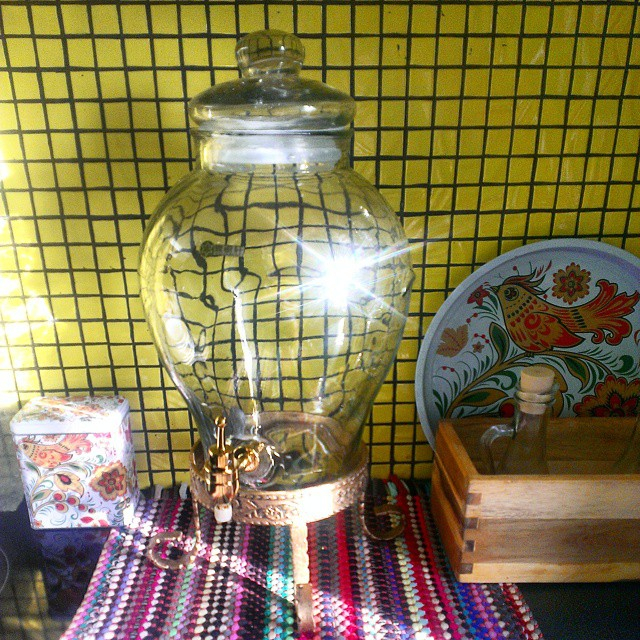 Этот пузатенький диспенсер мы используем просто для питьевой воды, а по праздникам - для лимонада и пунша.
