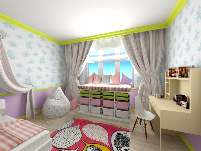 полосы на обоях это вы про молдинг да? просто на визе цвета чень яркие в реале салатовый планируется не такой кислотный...сис-му для хранения игрух вы имеете ввиду стуву с плстиковыми контейнерами?