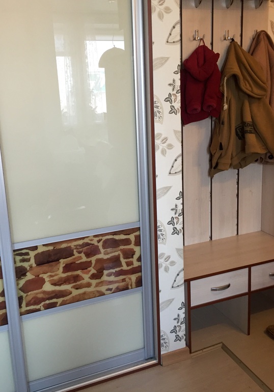 Большой электрощиток перенесли с другой стороны (там где сейчас вешалка) - там он мешал и непонятно было, как его задекорировать. Сейчас щиток спрятан за открывающимся зеркалом