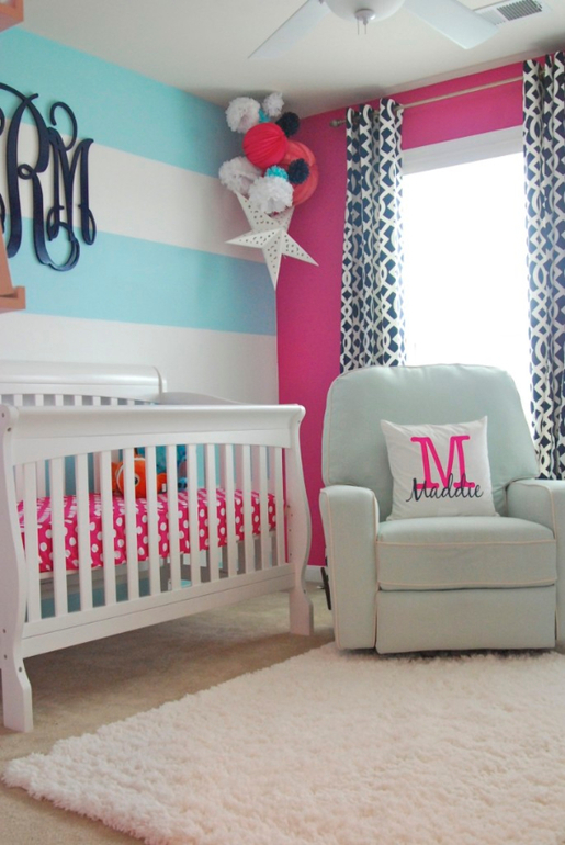 Татьяна, можно оформить детскую для девочки в стиле Одри Хепберн. Стиль Одри Хепберн вкратце можно определить как сочетание американского гламура с французской утонченностью. За основу можно взять Tiffany Blue – нежно-бирюзовый, дополнить акцентами черного цвета. Посмотрите тут описана идея оформления:http://www.babyroomblog.ru/wp/detskay_v_style_audrey_hepburn.html